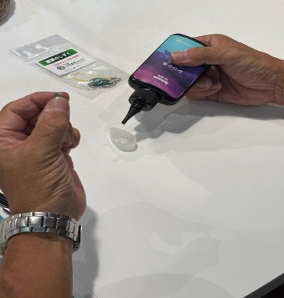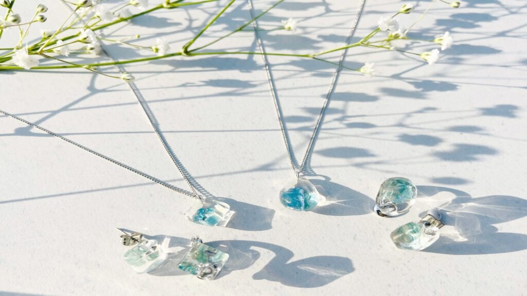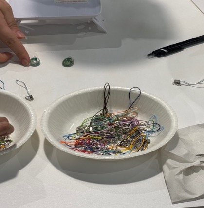 それぞれ気に入った貝殻を選び、他のチャームを使って中身を決めた後、レジンでストラップに仕上げ、お持ち帰りいただきます。
