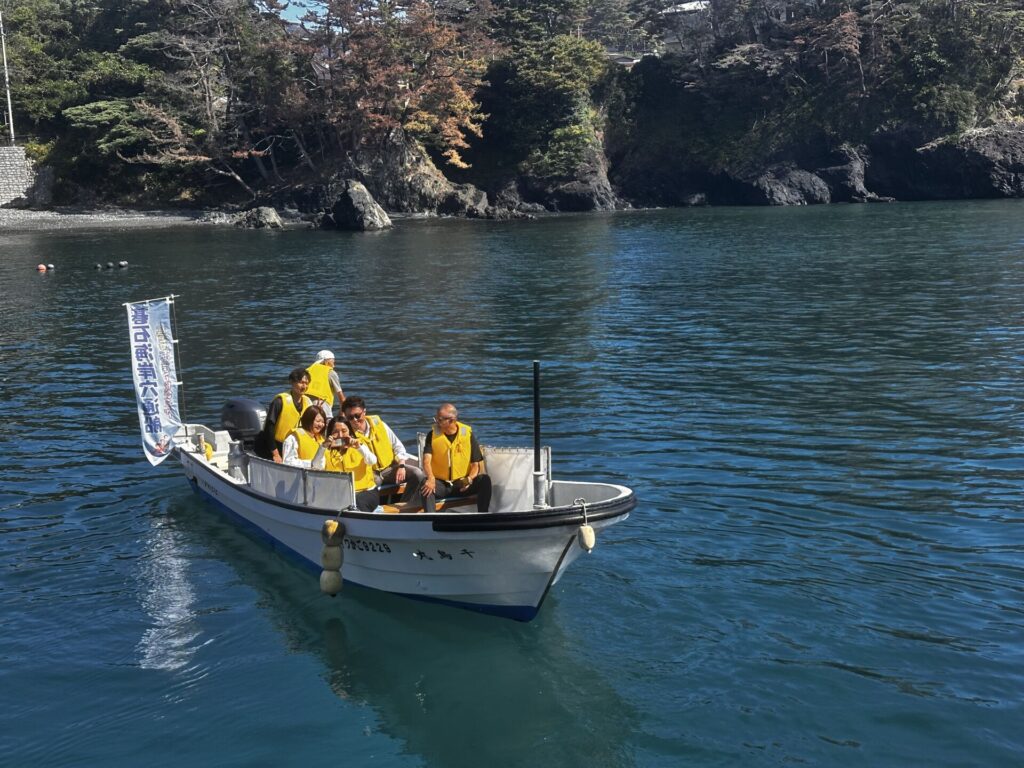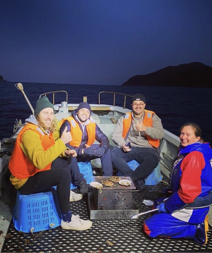 Join a cruise aboard the same workboat used by Jun, Isabelle’s beloved husband (amour!), who appeared in the video and runs a scallop farm. Watch scallop harvesting up close and taste freshly caught scallops on the spot. Cruise along the outer bay of the beautiful ria coastline, taking in the grandeur of the Sanriku Geopark. Onboard, enjoy charcoal-grilled scallops paired with wine aged underwater.